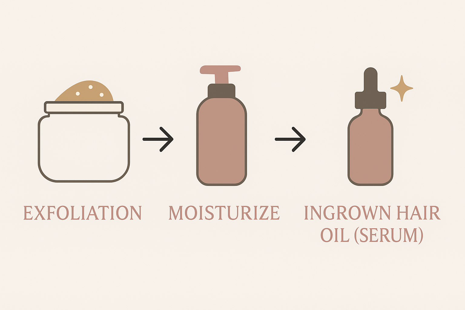 Start exfoliating 2–3 days after your wax, once the skin has calmed. Use a gentle scrub, exfoliating mitt, or chemical exfoliant (like a glycolic-based product) 2–3 times per week. Regular exfoliation removes dead skin cells, helps prevent clogged pores, and allows new hairs to grow in freely — reducing the risk of ingrowns.